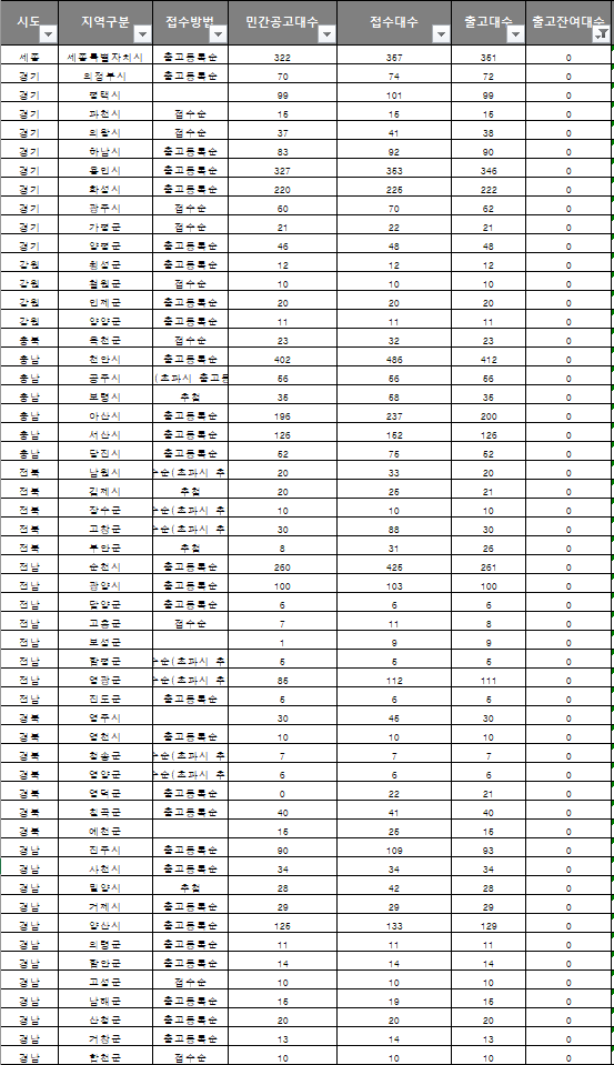 여기서 자신의 지역에 '출고 잔여 대수'가 몇대 남았는지 확인하면 됩니다.