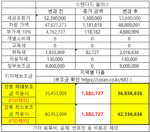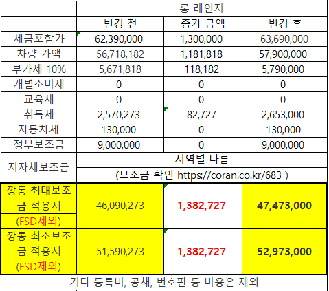 2019년 8월 24일부로 모든 트림의 가격이 130만원씩 인상되었습니다.