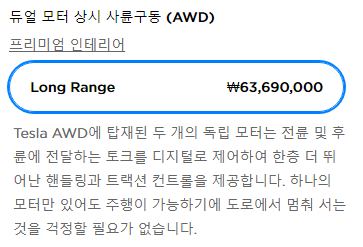 ----------------------------------------------------------------테슬라의 경우 차량의 옵션이 매우 명확합니다.