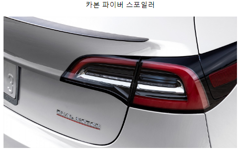 차량 트렁크에는 고속 주행 시 향상된 안정성을 제공해주고 공기의 와류를 해소해주는 카본 재질의 스포일러가 부착됩니다.