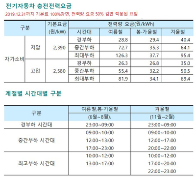 제가 사용하는 충전기는 경부하시간 요금이 50원대인데 내년엔 100원대가 되겠군요.