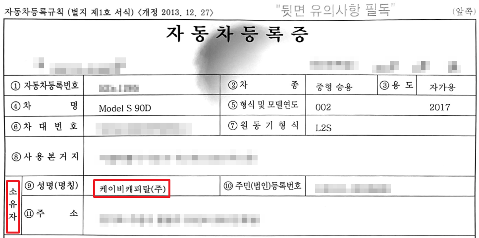 위 사진에서는 소유자가 리스회사인 'KB캐피탈'로 되어있죠.
