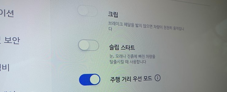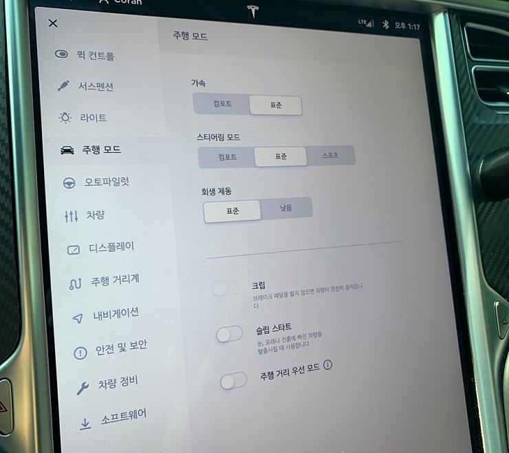 이를 해결하기 위해 테슬라 화면에서 '주행 모드' 로 들어가십니다.