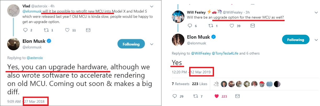 이렇게 제약이 많기 때문에 기존 테슬라 오너들은 돈을 지불하여 MCU 교체가 가능하냐고 일론 머스크에게 물었고