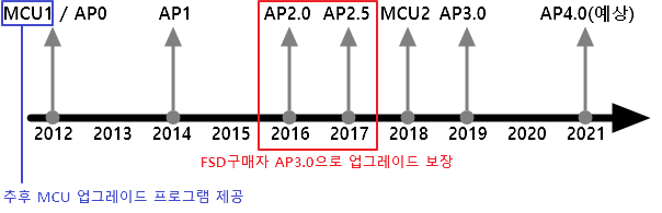 덧. 참고로 FSD옵션의 경우 AP를 3.0으로 업그레이드해주는 것이지 구형MCU를 신형MCU로 업그레이드해주는 건 아닙니다. 이 부분을 착각하시는 분들이 많으셔서 추가로 한줄 적습니다 ㅜㅜ