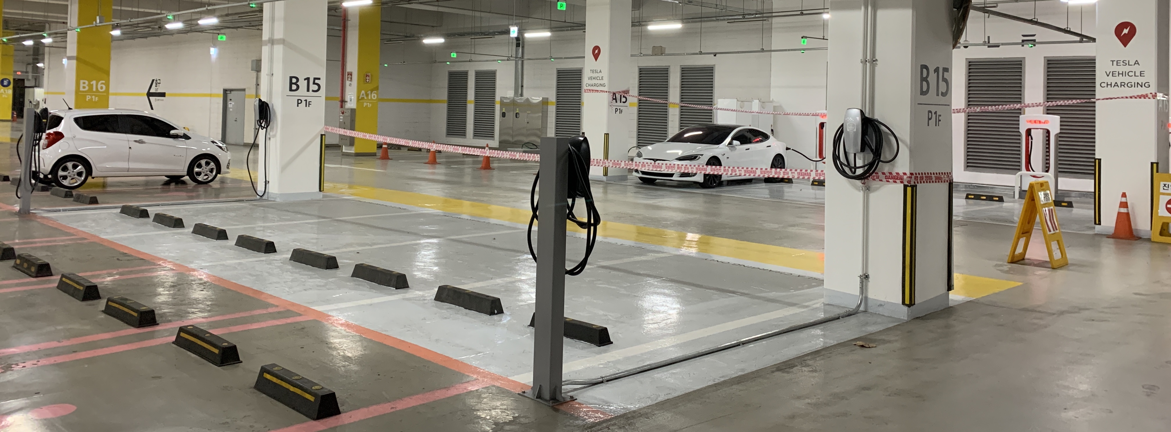 바로 맞은편에 데스티네이션 차저(테슬라 전용 완속 충전기)도 4개나 있습니다