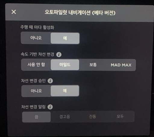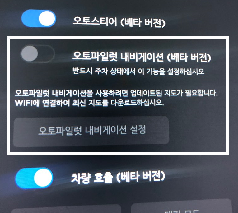 오토파일럿 내비게이션 기능을 키면