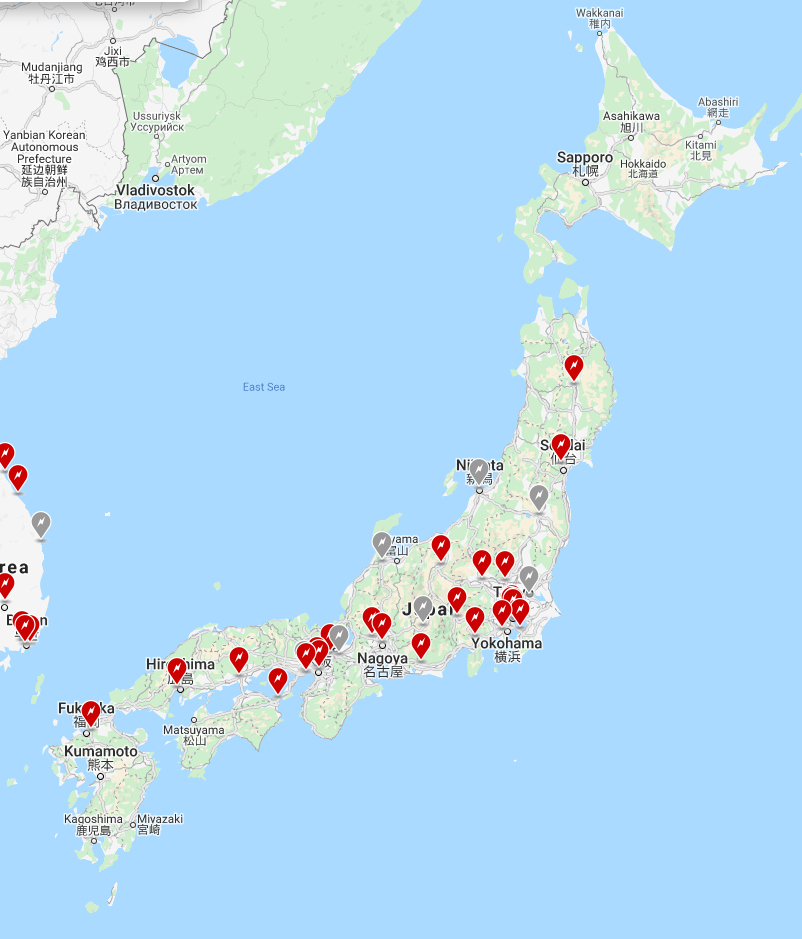 참고로 옆나라 일본은 우리나라보다 적은 24개소가 오픈되어있습니다.