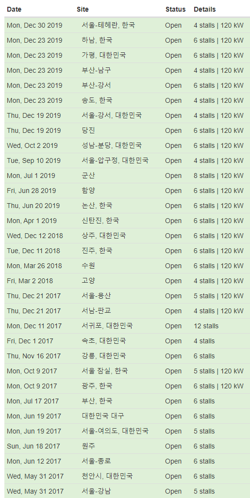 놀라운 점은, 전세계 수퍼차저 설치 순위를 보면 대한민국은 11번째로 많은 수퍼차저를 보유하고 있습니다.