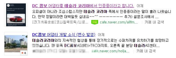 어제(8/31) 테슬라 및 전기차 관련 카페들에서 테슬라의 DC콤보 어답터 정식 개발에 대한 이야기가 올라왔습니다.