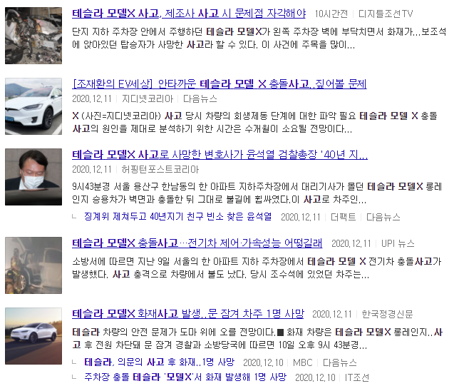 이번에 발생한 슬픈 사고로 많은 테슬라 기사들이 올라오고 있습니다.