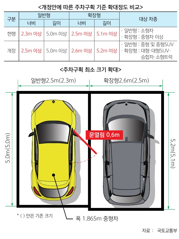 주차구획의 법적 사이즈가 개정되어 조금 커졌다지만,