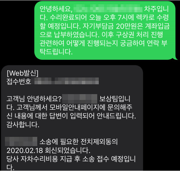 4. 대물보험 접수가 완료되었다면 수리 진행 혹은 미수선 처리