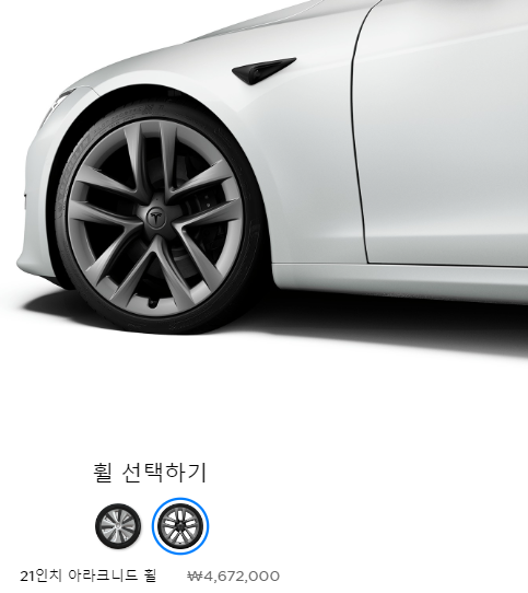 모델S의 21인치 옵션이 '아라크니드 휠(그레이)'로 바뀌었습니다.