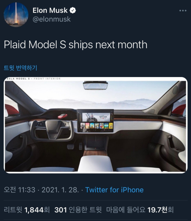 엘론 머스크 트위터에 따르면 미국은 바로 다음달부터 모델S Plaid가 출하됩니다.