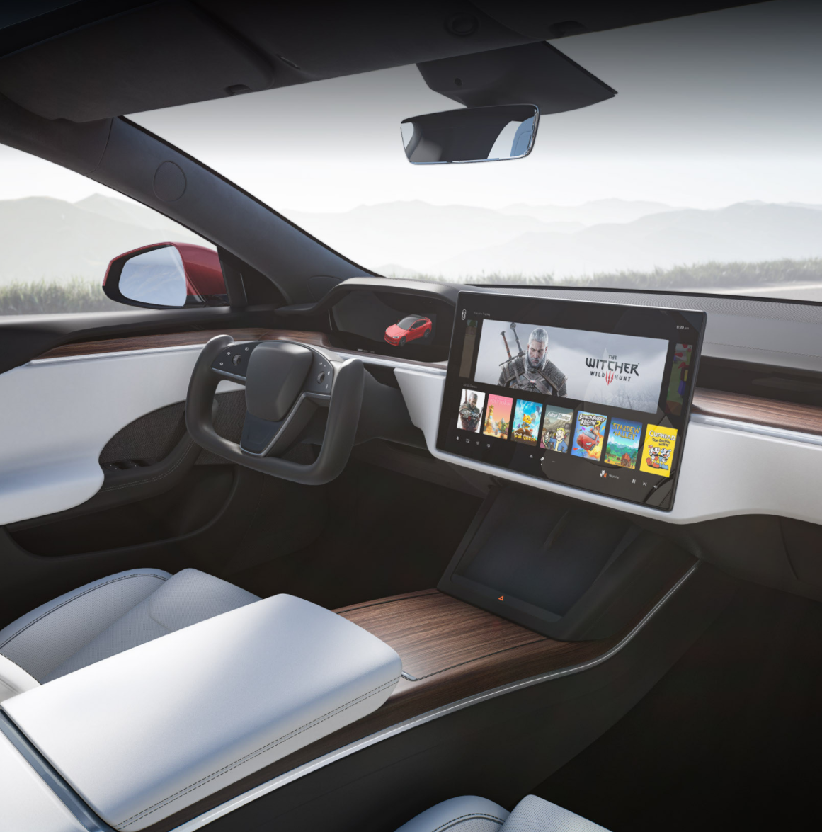 모델3이나 Y와 다르게 계기판이 탑재되고 요크 스티어링(핸들)이 달린 것이 엄청난 포인트입니다.