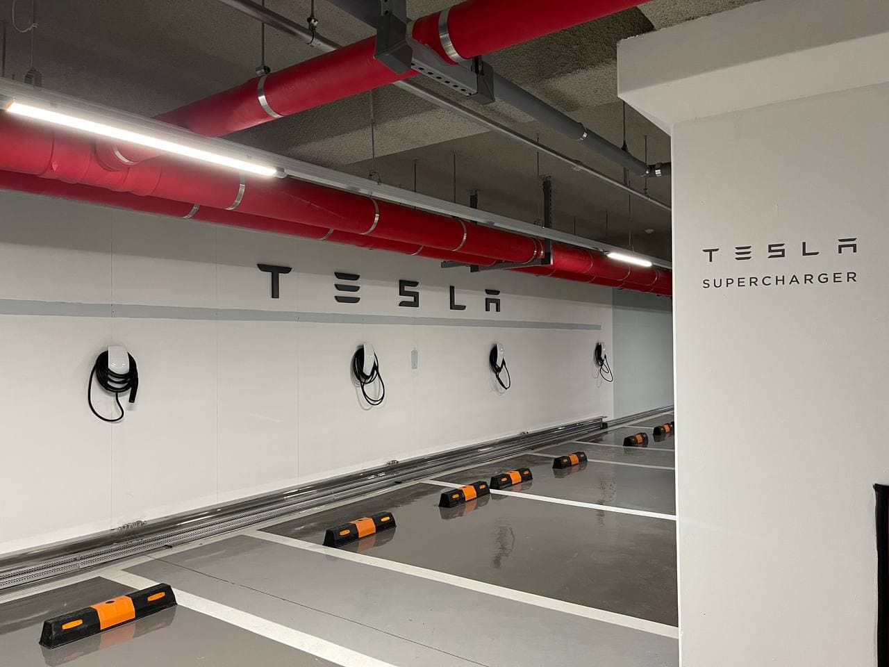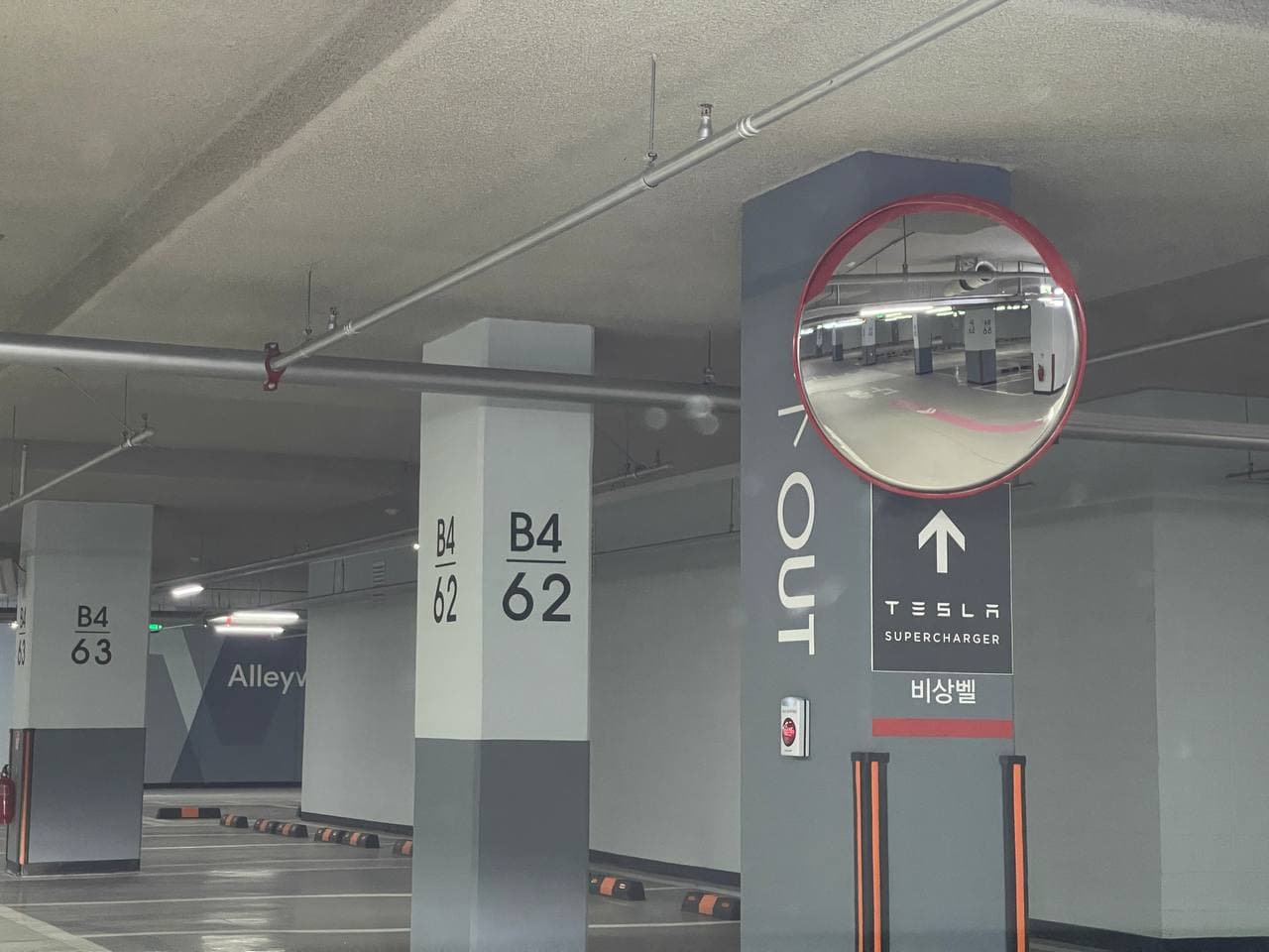 지하 4층까지 오면 TESLA SUPERCHARGER 안내가 붙어있습니다.