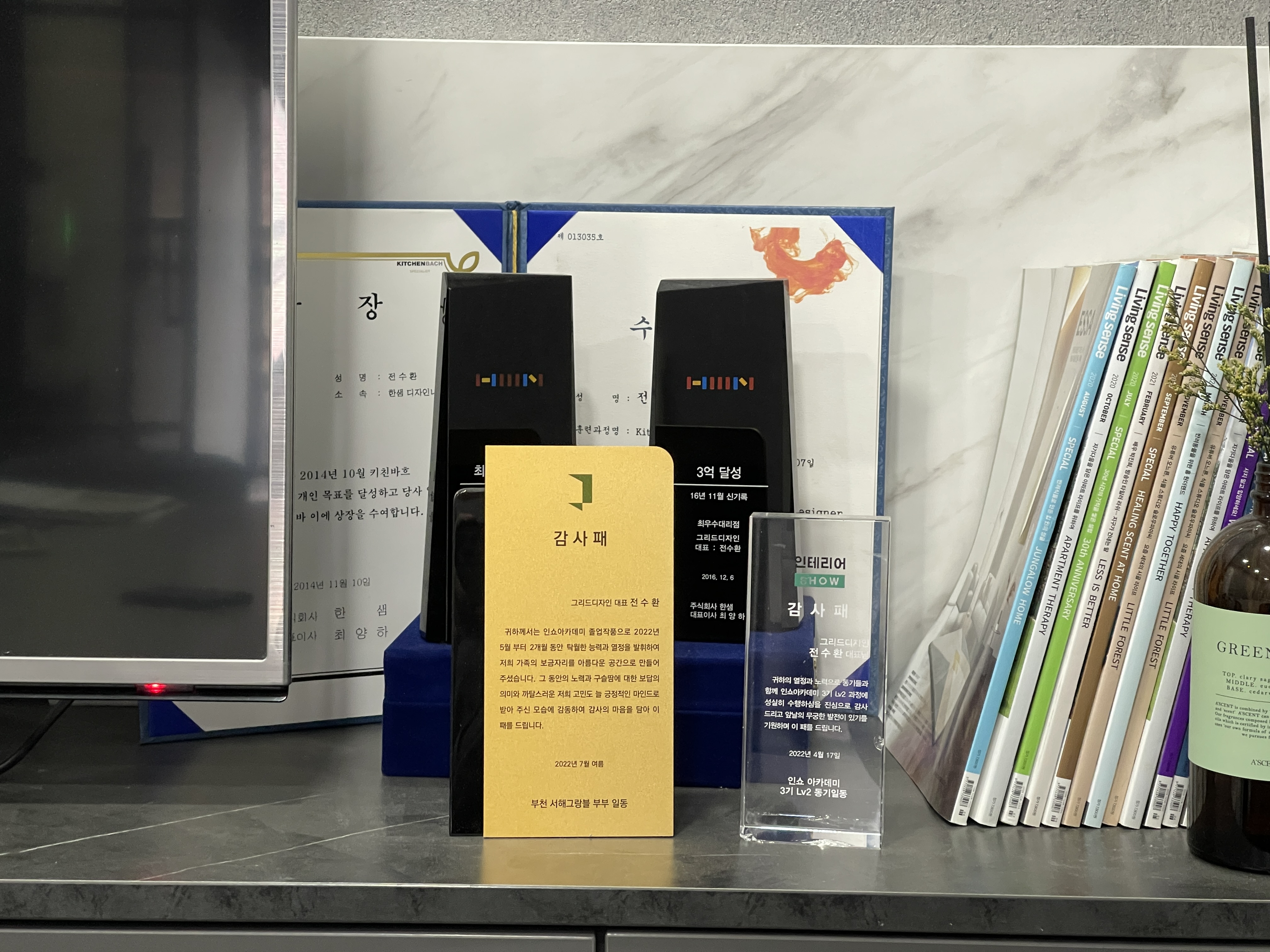 아무래도 고객께서 직접 감사하는 마음을 담아 감사패를 만들어서 주신 것 같습니다.