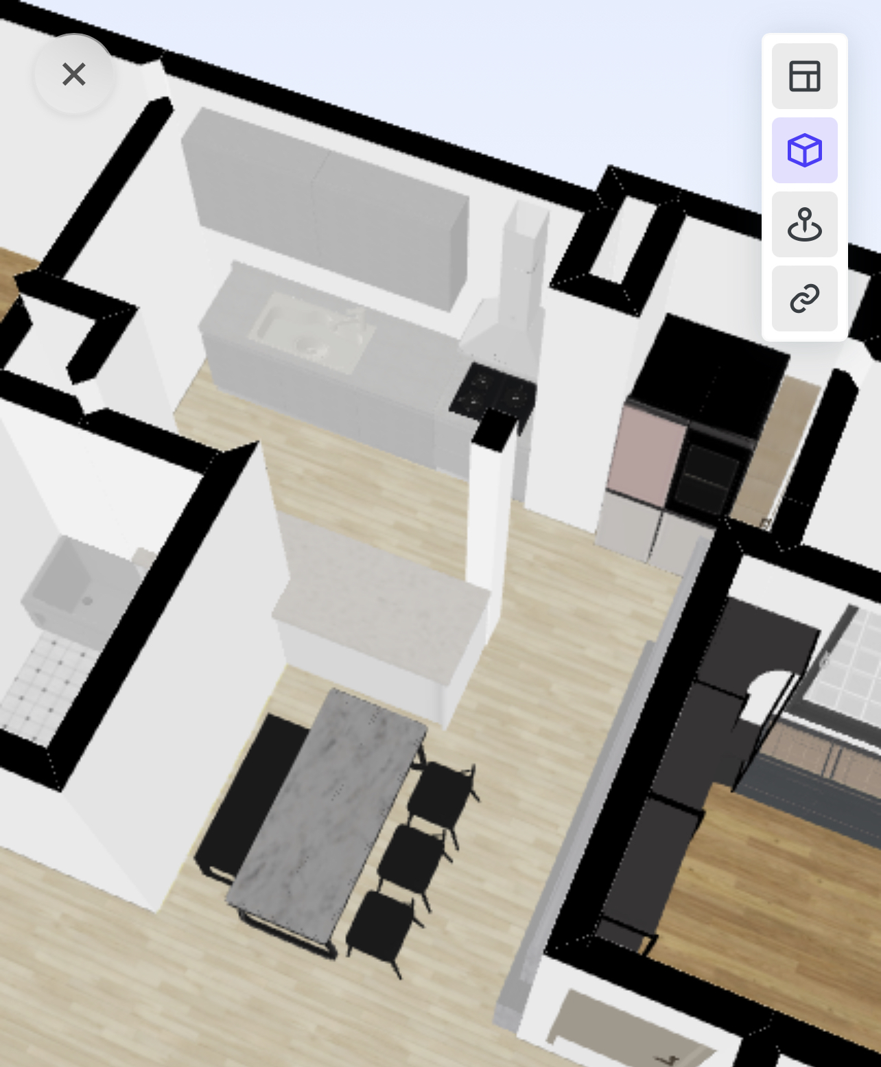 순간 두 눈을 의심했는데, 왜냐하면 정말 원하던 구도라지만 거실은 거실에, 주방은 주방에 그대로 있는 상태에서는