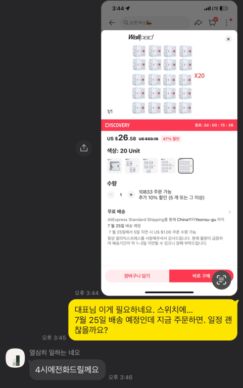 문제는 목공 공정 상 덮기 전에 스위치 복스를 넣어야해서, 5일 안에 당장 필요했습니다!!