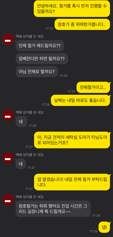 다행히 창호 업체에 철거 요청을 드리니 바로 대응해주셨고